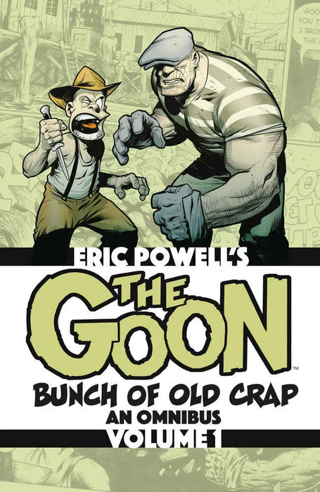 The first omnibus volume of Eric Powell’s Eisner Award-winning crime pulp series that combines pulp horror, crime drama, and a twisted sense of humor.Take a spin down Lonely Street in this huge, pulpy collection of mob bosses to undead ghouls—and the man who fights them all.On Lonely Street, crime is cheap but justice comes at a price, so the Goon and his sidekick Franky defend the neighborhood against crime lords and supernatural ne’er-do-wells alike to keep the neighborhood safe.The Nameless Man, the Zombie Priest, has come to town to build a gang from the undead. But the Goon is the only man brave enough to stand up to him, and even the undead fear the Goon! The Goon: Bunch of Old Crap Volume 1 collects the first four books of The Goon, featuring his misadventures on Lonely Street and the childhood story of how a boy born into a circus family became protector of the neighborhood. Collects The Goon: Rough Stuff, The Goon: Nothing But Misery, The Goon: My Murderous Childhood, and The Goon: Heaps of Ruination.