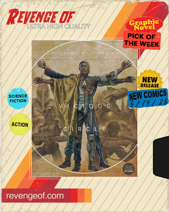 The genre defining, Eisner Award-nominated epic is now complete. Legendary artist Lee Bermejo (Batman: Damned, Joker) and visionary writer Mattson Tomlin (BRZRKR: Fallen Empire, The Batman Part II) join forces for an exhilarating, mind-bending time travel saga spanning from 22nd century Tokyo to 1950s New Orleans to the Cretaceous Era and beyond.Shawn Thacker is a trained assassin from the future who seeks revenge on the only other man with his affliction—each life they claim propels them both through drastically different times, spanning the distant past and future.As their destinies intertwine, these two mortal rivals find themselves locked in a battle of wills that spans millions of years… At stake? The course of history itself.Collects A Vicious Circle #1-3.
